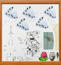 22cm sq. canvas panels, photos and plant materials. photos from creative commons. framed in wood. unglazed.